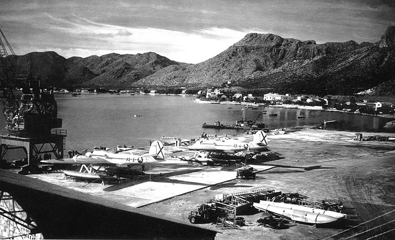 (Base militar del Port de Pollença, Mallorca, any 1938. Hidroavions italians CANT Z - 506 en reparació ) Tret del bloc de Climent Picornell
