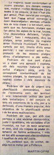 CARTA al diari Ultima Hora el 26-7-80 p.12. El text de la Balearització és una mica anterior. Sentim molt la qualitat de les imatges i no poder ampliar molt més els textos. Ineptitut informàtica.