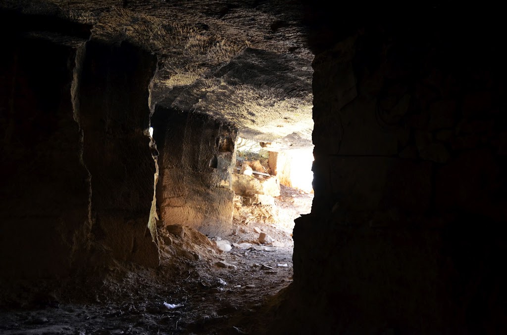 Començam a entrar i anam veient la part més antiga, és sorprenent la quantitat de metres cúbics de marès que se va treure de forma manual, a les parets i els sostres se veuen les marques que deixaven les escodes quan tallaven les peces. A algunes zones també se pot veure, al sostre, les marques dels llums de carbur que empraven els picadors per il·luminar el tall, això a partir del 1900.