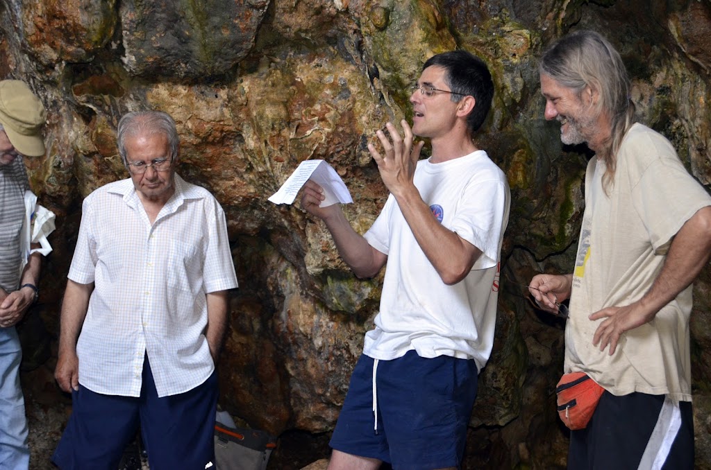 Tornant a l’homenatge, el previst era trobar-nos a les 10 del matí al Casinu de l’Orient a Capdepera i d’allà partir a peu fins a la Punta dels Eriçons que és on hi ha la cova de na Barxa. La caminada va ser d’uns vint minuts, en arribar a l’entrada de la cova haguérem de fer tots els preparatius i les instal·lacions de material adient pel descens a la cavitat, no hi mancaren dificultats tot i la bona preparació tècnica i física dels participants però com diuen els millors manuals d’espeleologia, sempre s’ha de dur una escala en anar a una cova, aquesta va ser l’eina fonamental sense la qual no hi haguéssim pogut entrar.