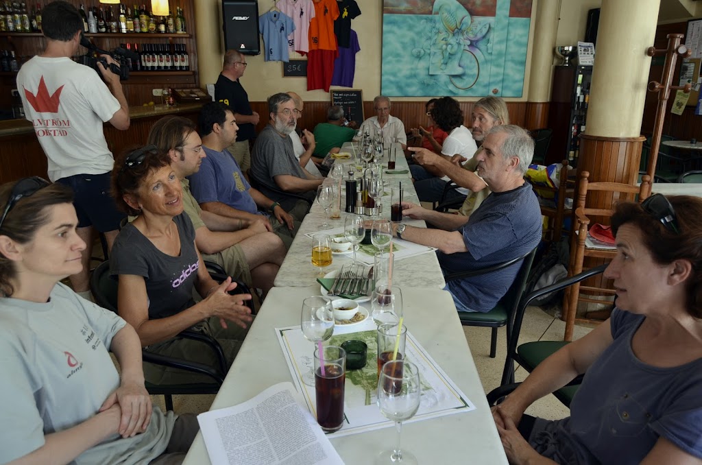 A l’hora de sortir, tot i la dificultat del lloc, la gent ja duia un altre ritme perquè el següent punt del programa era anar a dinar al Casinu de l’Orient. El plat principal preparat per les seves cuines elegíaques havia de ser Myotragus al forn amb patató. Per a no arribar tard a tan important acte, començàrem a caminar aviadet i sense xarrar massa, sentint-se de tant en tant els grunys i remors de més d’una panxa. Just abans d’entrar al pobla ja ens arribava l’olor d’aquella carn enfornada que ens guiava de cap a l’Orient.