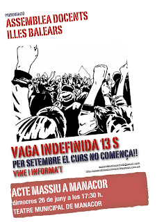 Demà acte multitudinari per difondre i informar sobre la vaga indefinida d'educació. Dimecres a les 17:30h a Manacor, al Teatre Municipal. Que tot això sigui un èxit només depèn de nosaltres!!