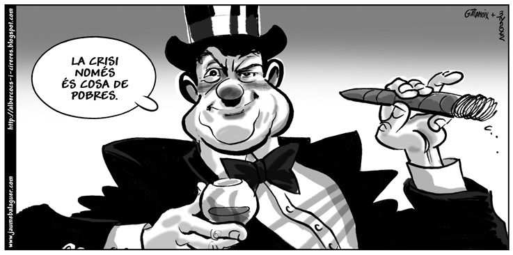 Ja hi ha molteta gent que comença a estar més que farta d’haver d’aguantar que un dia i un altra li escurin la butxaca, l’embusterejin i li venguin en romanços tot lo sant dia. Una objectiu essencial de qualsevol societat hauria de ser una redistribució de la riquesa, que fes real la igualtat d’oportunitats i la vigència pràctica dels drets humans. Després de segles de classes dominants molt petites i de una gran majoria del poble explotat i al seu servici, un poc s’havia avançat amb el creixement de la classe mitjana, amb un augment socialitzador dels serveis públics i un portelló obert a la democràcia. Avui sembla estam davant una reculada en els avanços conquerits: el món financer controla tots els governs, roba descaradament amb “preferents”, hipotèques, comissions, sous i clàusules d’escàndol pels directius (fins i tot pels fracassats), compra partits polítics, comanda els gran mitjans de comunicació... i el poble a fer coa a Càritas, la Creu Roja i menjadors populars de “beneficència”. On és la milionada dels pispada per la corrupció (Gurtel, Bàrcenas, ERE andalús, Urdangarin, Matas, Munar...)?; qui s’ha quedat amb els més de mil milions de les “preferents”... ? Com que l’ambició econòmica no té mesura, a poc a poc els serveis i les empreses públiques es van privatitzant: salut, aeroports, educació... I esperau, no se torbaran a privatitzar les pensions. Tot s’escola dins els mateixos sarrons; els que ja anaven polents ara van en rauja. S’imposa un canvi radical del sistema. Fins que no conquistem una més justa distribució de la riquesa i dels bens del món, el poble no traurà faves d’olla; tot el demés és munyir indiots per la cresta.