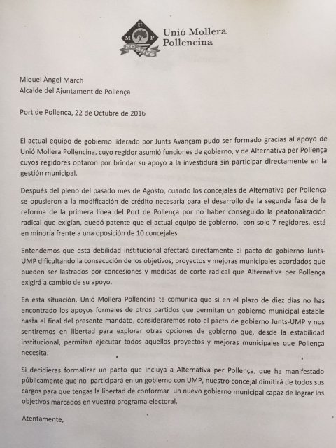 Re: La carta d'UMP al batle: maniobra final per a la moció de censura.