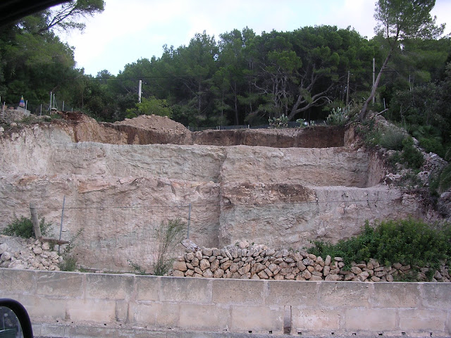 Aquesta grua és un avanç de l'atemptat paisatgístic i destrucció de la Cala que ens espera. Al solar on s'ha aixecat hi ha previst 13 apartaments adossats, abans era Can Colom i havia pins centenaris. Com hem denunciat reiteradament aquestes llicències van contra la fisonomia actual de la Cala i no tenen en compte els serveis i capacitat de la mateixa Cala.