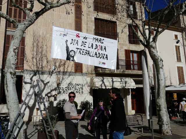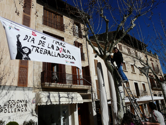 Ahir a la tarda, membres d'Alternativa EU-EV de Pollença, vàrem anar a penjar una gran pancarta a la plaça, amb motiu del dia de la dona. Com un temps, hem recollit la frase dona treballadora, tot i saber que totes les dones són treballadores, però així no perdem l'esperit iniciàtic de la reivindicació: la millora de les condicions de les dones en l'ambient laboral, i en tots els sentits de la vida.