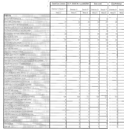 A aquest pdf podu consultar els resultats a Pollença de les darreres eleccions al Parlament europeu per taules electorals.