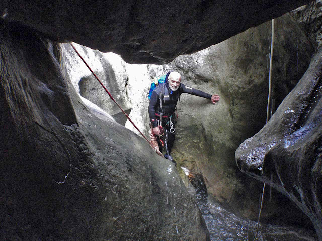 Per tornar hi ha dues opcions, remuntar tot el torrent o sortir per el pas d’Aniràs i no tornaràs. A part d’aquest pas, la resta de l’itinerari de tornada també té la seva emoció. Hi ha una sèrie de passos bastant aeris però que avui en dia estan instal·lats per poder assegurar-se. Fa anys no hi havia cap tipus de muntatge, ara pensem que érem molt valents o poc conscients.