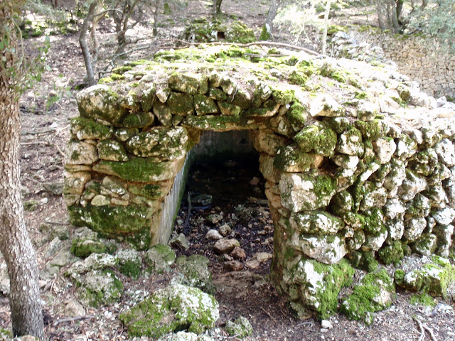 Començam a pujar per un caminet antic i anam passant per rol·los de sitges, forns de calç, aljubs, forns de pa i barraques, que ens diu que en el seu temps aquesta muntanya boscosa devia tenir molta activitat i segur que hi circulaven moltes persones. Persones que explotaven els recursos naturals, que vivien de la muntanya, que cuidaven i respectaven la muntanya.
