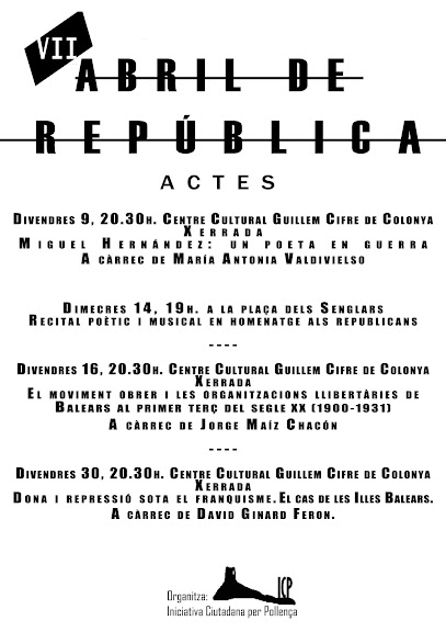 Per setè any consecutiu Iniciativa Ciutadana per Pollença organitza actes de commemoració de la República: Abril de República.