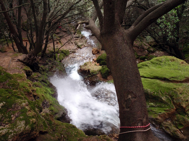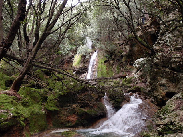 Aprofitàrem que érem prop, per visitar el salt des Freu que aquest hivern porta molta d’aigua, un recó espectacular. En haver dinat tornam pujar fins el pas de s’Estaló i agafam el camí de es Rafal, una possessió molt antiga. Ara ja només és baixada, massa i tot, fins arribar a la font de ses Artigues i d’allà seguim fins Alaró.