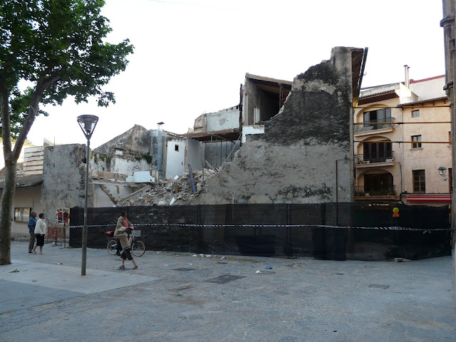 Avui he pres un cafetet a la plaça i l'espectacle es vertaderament lamentable; renou, pols... L'ambient ideal pels pocs turistes que tenim.
