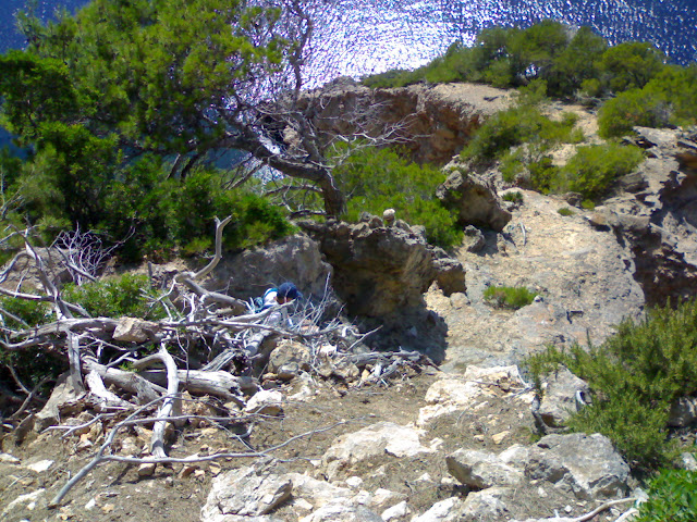De vegades ens dedicam a baixar a la vorera de mar a llocs on no és fàcil del tot, per això qualque vegada fem una mica de muntatge per a fer-ho un poc més fàcil. En aquest cas posàrem unes plaquetes i uns cables d’acer per a poder anar a la Cuina del Moro sense tant de pressing , cada any hi anam al manco una vegada. Aquest febrer passat férem el muntatge i curiosament aquest estiu no hi hem anat, se veu que estam una mica més enfeinats.