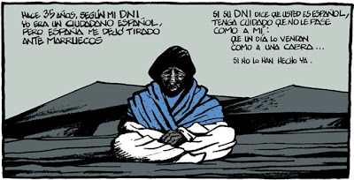 Quina vergonya i quin cinisme d’Espanya i de l’ONU! Zapatero digué a la cimera de G 20, referint-se al atac de Marroc contra el campament d’El Aaiún, que “tiene que defender los intereses españoles”. A filar estopa els drets del poble sahrauí, la justícia, el dret internacional, la Resolució de l’ONU 1514 (XV) més clara que l’aigua. A fer vaumes tota una nació que fa més de 30 anys, està deixada de la mà de Déu, sotmesa, dispersa, perseguida, invadida, separada per una murada de més 2.000 kms, que controlen 150.000 soldats marroquins, radars, mines antipersonals i anticarros (tot això a un cost de més d’un milió d’euros diari).
