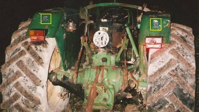 A les fotografies fetes a la finca podeu observar clarament els escuts de l’Ajuntament a la part trasera de l’Ajuntament (remarcats amb groc). Per comprovar els fets vam demanar a treballadors sobre aquest tractor i ens van confirmar que era l’utilitzat a l’empresa municipal EMSER.